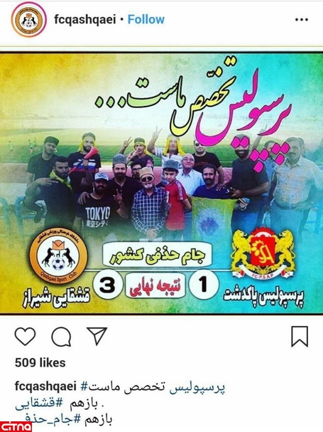 این پیروزی باعث شد تا صفحه اینستاگرام تیم قشقایی، واکنش عجیبی به این موضوع داشته باشد و از تشابه اسمی این دو تیم برای کریخوانی استفاده کند.