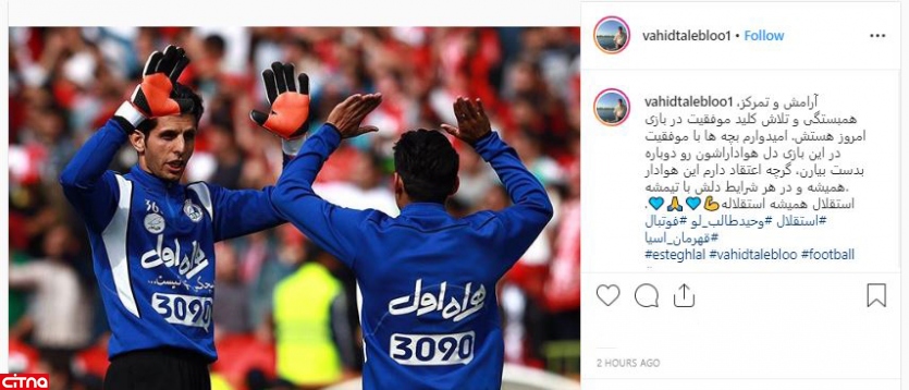 وحید طالبلو دروازهبان سابق استقلال که در دربیهای زیادی حاضر بوده از رمز موفقیت در دربی در اینستاگرامش نوشت: