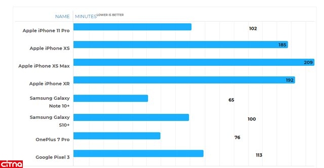 به گزارش سیتنا، با توجه به آنکه توجه غولهای تکنولوژی و شرکتهای تولیدکننده موبایل در سالهای اخیر بر روی افزایش مدت زمان شارژدهی گوشیهای هوشمند و ارتقای کیفیت باتری بوده است، حالا کارشناسان و تحلیلگران فعال در حوزه فناوری با انجام تحقیقات و بررسیهای جدید گزارش جدیدی را منتشر کرده اند که نشان میدهد آیفون ۱۱ پرو در مقایسه با سایر گوشیهای آیفون عملکرد باتری بهتر و موفقیتآمیزتری را به نام خود به ثبت رسانده است.