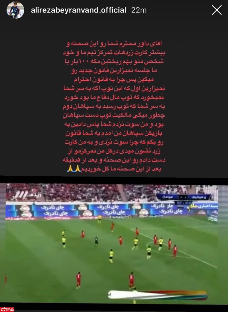 علیرضا بیرانوند نسبت به قضاوت وحید کاظمی در دیدار پرسپولیس و سپاهان واکنش نشان داد.