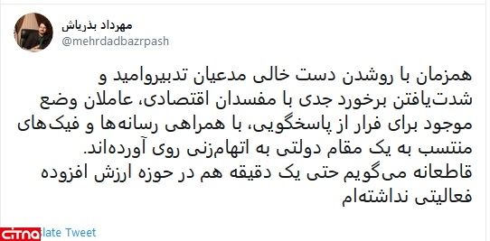 به گزارش سرویس وبگردی سیتنا، مهرداد بذرپاش توئیت کرد: