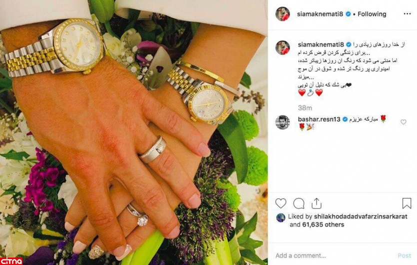 به گزارش سرویس وبگردی سیتنا، سیامک نعمتی وینگر شمالی پرسپولیس با انتشار عکسی در اینستاگرامش خبر از پیوستنش به جرگه متاهلین داد و نوشت: