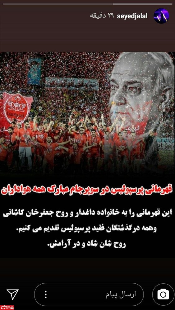 پس از این اتفاق بازیکنان پرسپولیس در یک استوری مشترک، این عنوان را به مرحوم جعفر کاشانی و دیگر درگذشتگان پرسپولیس تقدیم کردند.