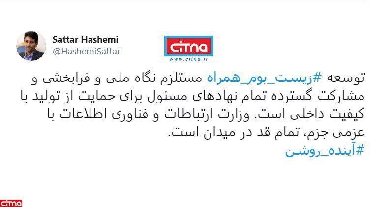 توسعه #زیست_بوم_همراه مستلزم نگاه ملی و فرابخشی و مشارکت گسترده تمام نهادهای مسئول برای حمایت از تولید با کیفیت داخلی است. وزارت ارتباطات و فناوری اطلاعات با عزمی جزم، تمام قد در میدان است.