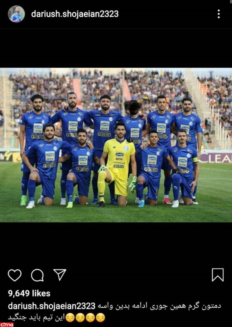 به گزارش سرویس وبگردی سیتنا، داریوش شجاعیان که امروز برابر سایپا به شدت آسیب دید، پست معنی داری در اینستاگرامش منتشر کرد و نوشت: دمتون گرم. همینجوری ادامه بدین؛ واسه این تیم باید جنگید.