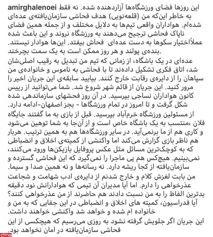 امیر قلعهنویی که کنفرانس خبری او در دیدار مقابل سایپا حواشی زیادی را به پا کرده بود، با گذاشتن پستی در اینستاگرام در خصوص اتفاقات روز بازی با سایپا توضیح داد.