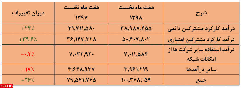 همان گونه که مشاهده میشود درآمدهای اصلی شرکت که شامل درآمد کارکرد مشترکین دائمی و اعتباری بوده که با رشد خوبی نسبت به سال گذشته همراه شده و این بخش از درآمدهای شرکت عمدتا شامل دو بخش مکالمات و استفاده از اینترنت و دیتا بوده است.