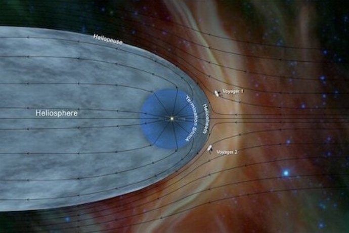 کاوشگر «وویجر۲» پس از ۴۲ سال برای نخستین بار اطلاعاتی از خارج منظومه شمسی به زمین فرستاد. مقایسه میان اطلاعات کاوشگرهای وویجر۱ و ۲ شکل هلیوسفر را دقیق تر نشان داد.