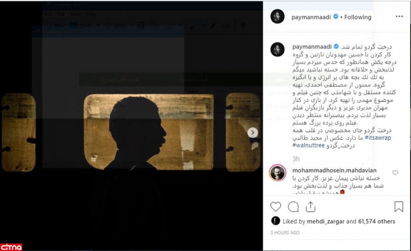 به گزارش سرویس وبگردی سیتنا، پیمان معادی با انتشار دو تصویر از پشت صحنه فیلم سینمایی «درخت گردو»، تازهترین ساخته سینمایی محمدحسین مهدویان در اینستاگرام نوشت:
