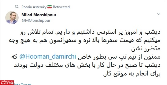 ممنون از تیم تپ سی که دیشب تا صبح در حال کار با بخش های مختلف دولت بودند برای انجام به موقع کار.