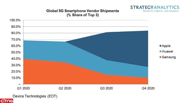 پیشتر نیز کارشناسان و تحلیلگران فعال در موسسه استراتژی آنالتیکس برآورد و اعلام کرده بودند که اپل قصد دارد با معرفی و عرضه گوشی های هوشمند مجهز به شبکه ۵G، از رقبای خود یعنی شرکت های سامسونگ و هواوی سبقت گرفته و بدین ترتیب تبدیل به شرکت پیشگام در توسعه شبکه ۵G شود.