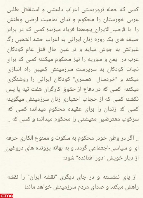 به گزارش سرویس وبگردی سیتنا، صفحه منتسب به یاسین رامین همسر سابق مهناز افشار با انتشار یک عکسنوشته در توئیتر به دفاع از این بازیگر پرداخت.