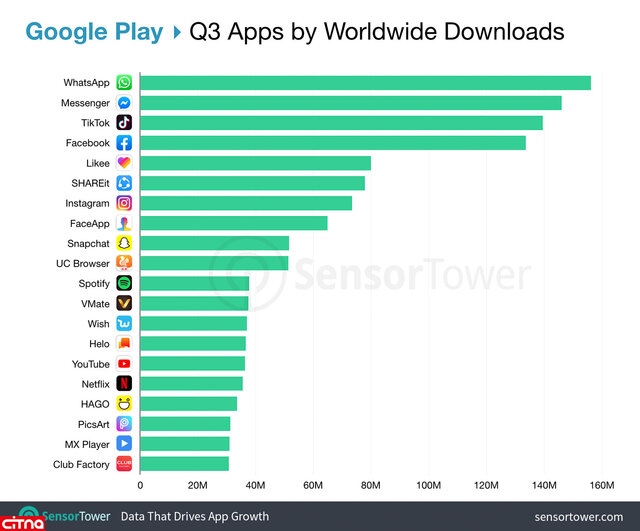 بر اساس گزارش های منتشر شده از سوی کارشناسان و تحلیلگران فعال در موسسه تحقیقاتی سنسور تاور، با مرور مختصری بر این اپلیکیشنها که به ترتیب با بیشترین تعداد دفعات دانلود در پلتفرمهای مذکور رکورد محبوب ترین برنامهها برای کاربران را در سه ماهه سوم سال ۲۰۱۹ میلادی به نام خود به ثبت رساندهاند، میتوان دریافت که کاربران موبایل این روزها بیشترین تمایل را به دانلود و استفاده از برنامههای پیام رسان، شبکه های اجتماعی، موزیک، سرگرمی و نرم افزارهای کاربردی دارند.