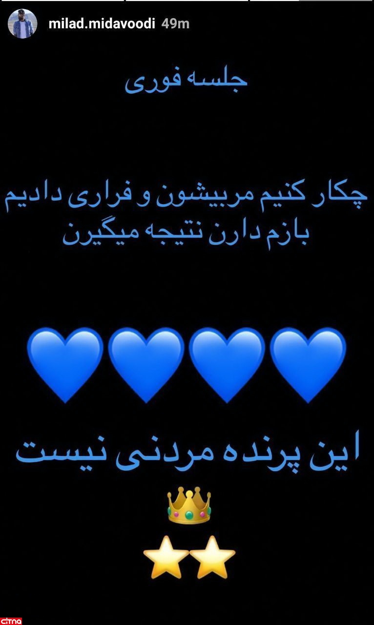 استوری میلاد میداوودی: مربیشون رو فراری دادیم و بازم دارن نتیجه میگیرن!