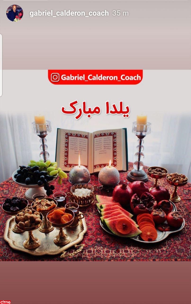 به گزارش سرویس وبگردی سیتنا، گابریل کالدرون سرمربی آرژانتینی تیم پرسپولیس با انتشار یک استوری در صفحه اینستاگرام خود، فرارسیدن شب یلدا را تبریک گفت.