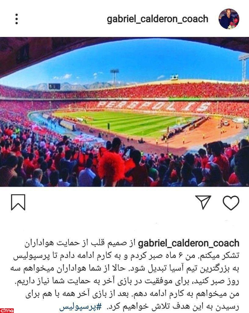گابریل کالدرون سرمربی پرسپولیس پست جدیدی در اینستاگرامش منتشر کرد.