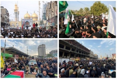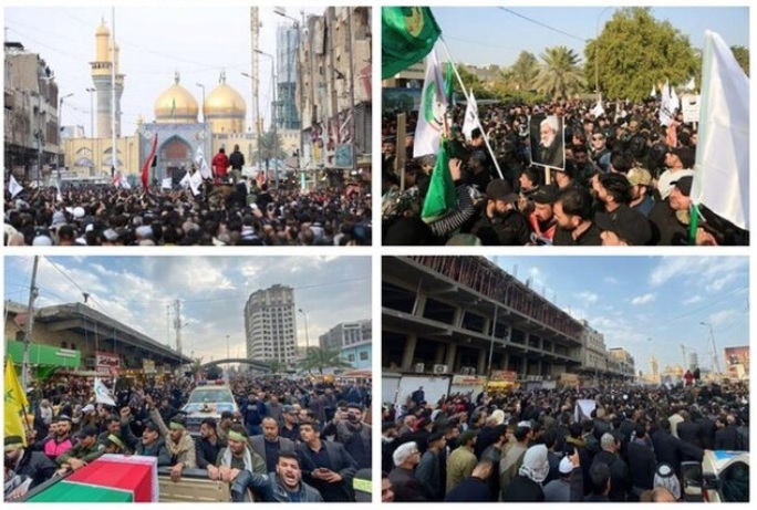۲۴ ساعت قبل یک دلقک خودشیفته که قیافه دیپلمات به خود گرفته است ادعا کرد که مردم در شهرهای عراق به پایکوبی پرداخته اند. امروز صدها هزار نفر از برادران و خواهران سربلند عراقی ما در سراسر خاک شان پاسخ او را دادند. پایان حضور پلید آمریکا در غرب آسیا آغاز شده است. "