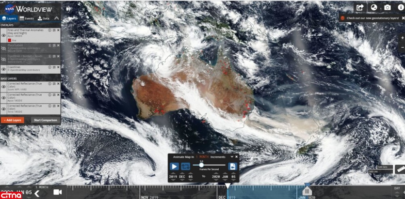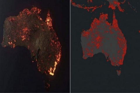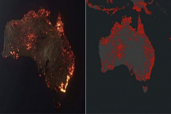 اما تصویر زیر عکس واقعی ماهوارههای ناسا از آتس سوزی در استرالیا است: