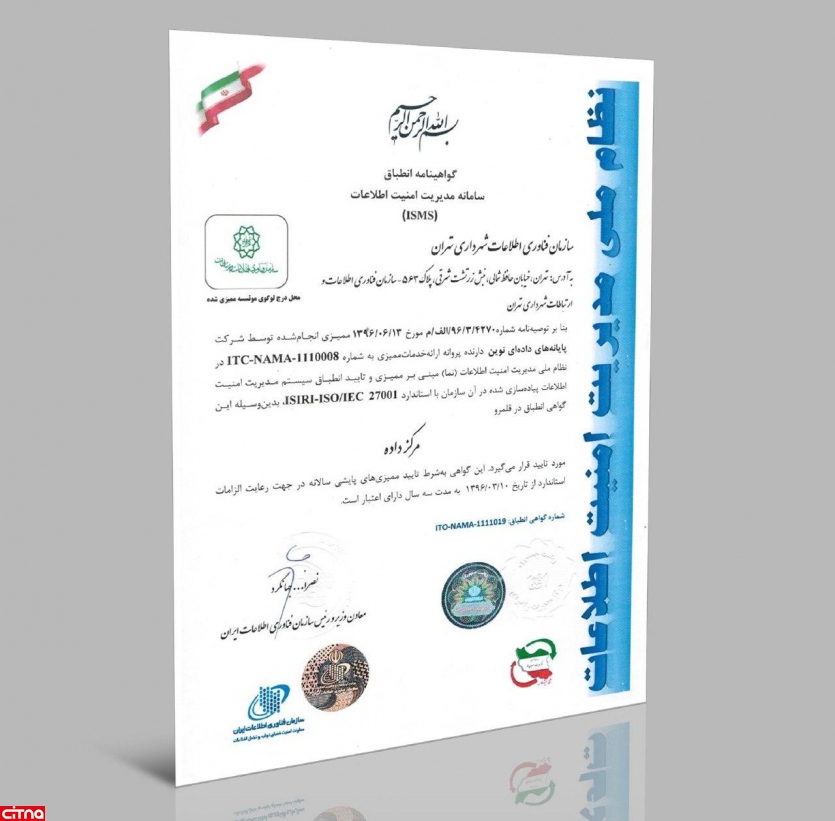 به گزارش سیتنا به نقل از روابط عمومی سازمان فناوری اطلاعات ارتباطات شهرداری تهران، مرکز افتای ریاست جمهوری گواهینامه سیستم مدیریت امنیت اطلاعات بر اساس استاندارد ISO/IEC 27001:2013 را که سازمان در سال 96 برای مرکز داده شهرداری تهران موفق به اخذ آن شده بود، برای دومین سال متوالی تمدید کرد.