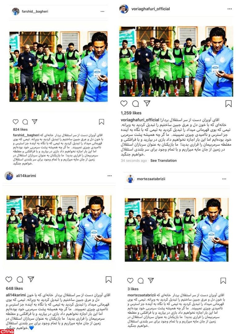 بازیکنان استقلال پیش از سفر به امارات در حمایت از سرمربی خود پست مشترکی را منتشر کردند.
