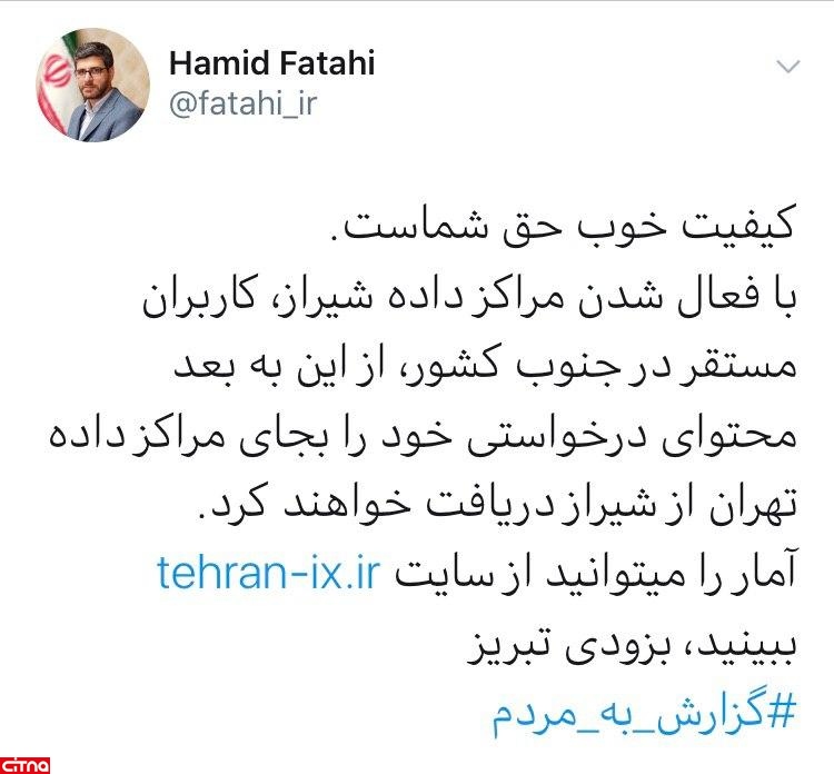 با فعال شدن مراکز داده شیراز، کاربران مستقر در جنوب کشور، از این به بعد محتوای درخواستی خود را بجای مراکز داده تهران از شیراز دریافت خواهند کرد.