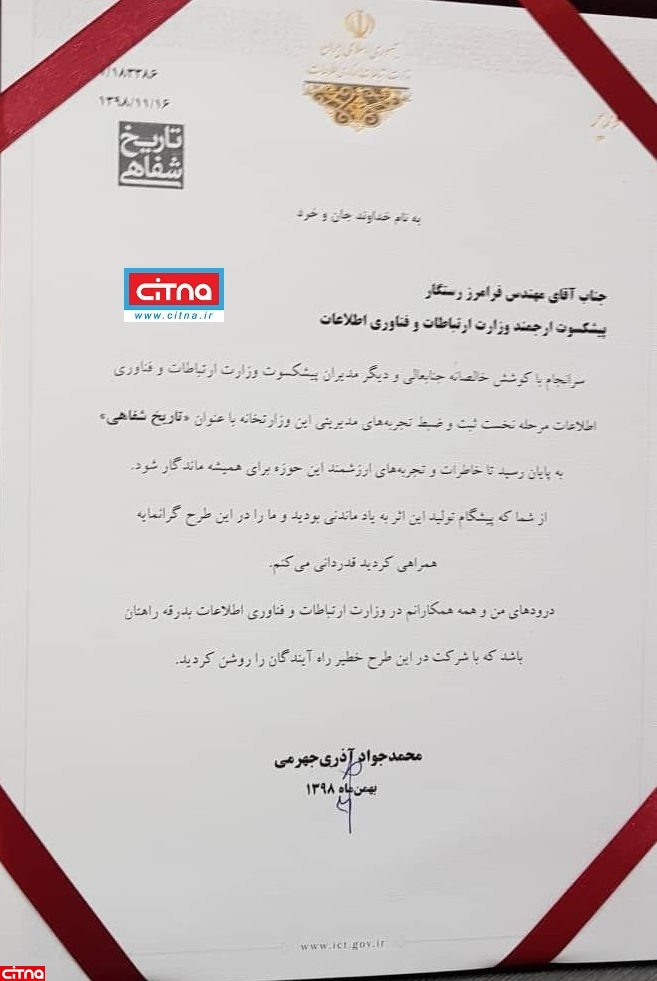 وزیر ارتباطات و فناوری اطلاعات از فرامرز رستگار از مدیران پیشکسوت صنعت مخابرات کشور، بابت تلاشها در تدوین تاریخ شفاهی وزارت ارتباطات تقدیر کرد.