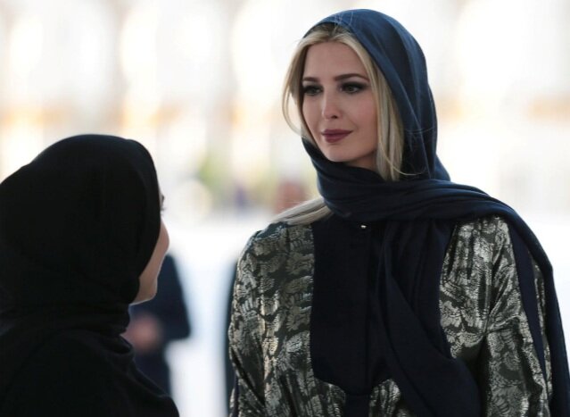 ایوانکا ترامپ، دختر دونالد ترامپ، رئیس جمهوری آمریکا، در جریان سفر خود به امارات برای ورود به مسجد شیخ زاید در ابوظبی حجاب بر سر کرد.