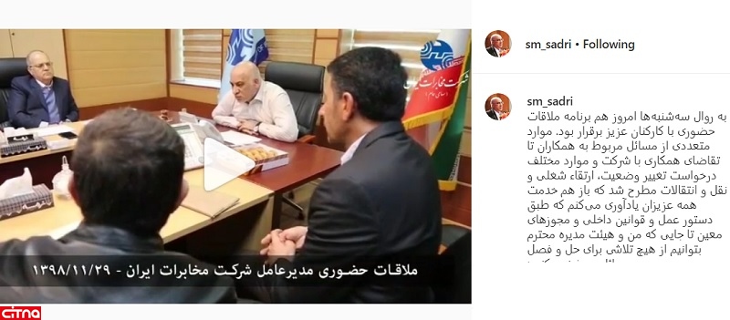 به گزارش سیتنا، مهندس سید مجید صدری روز گذشته (سه شنبه) با انتشار ویدئویی در اینستاگرامش نوشت: