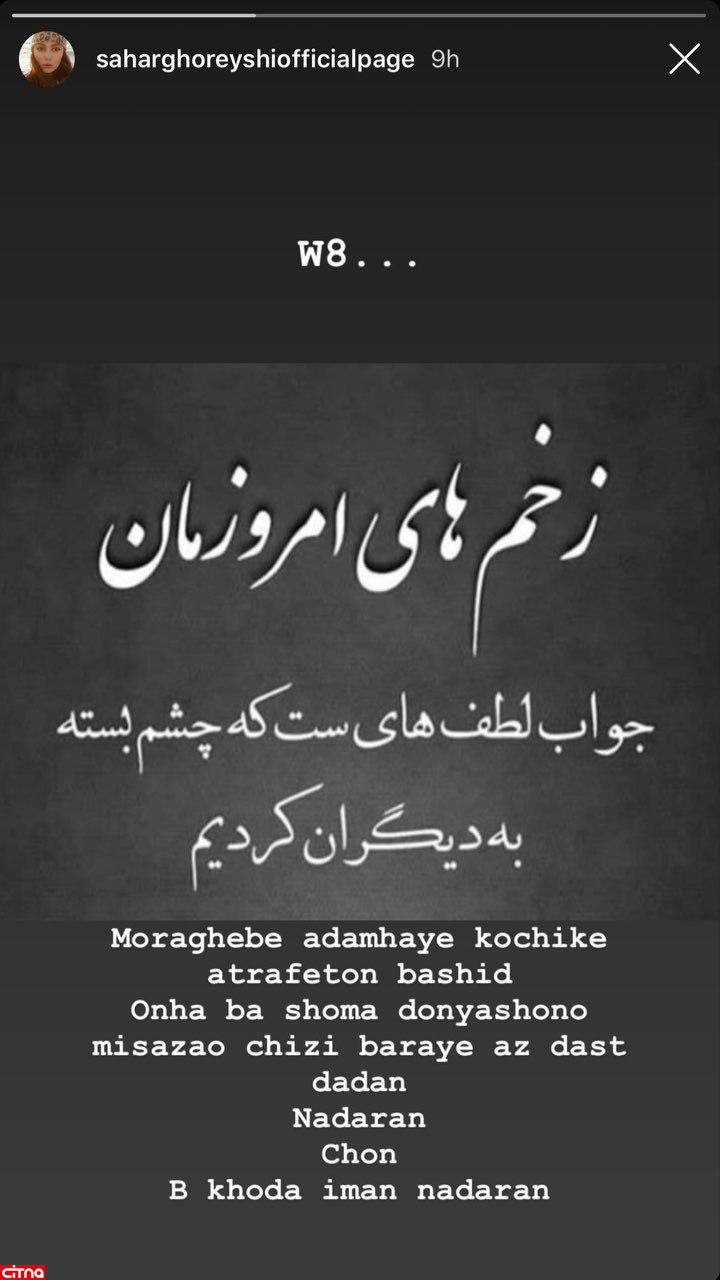 استوری سحر قریشی در واکنش به انتشار تصاویر خصوصی اش با مهدی طارمی