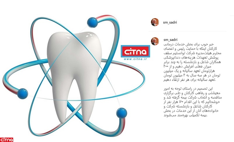 صدری، خبر داد: افزایش سقف پوشش تعهدات هزینههای دندانپزشکی کارمندان شاغل و بازنشسته شرکت مخابرات ایران