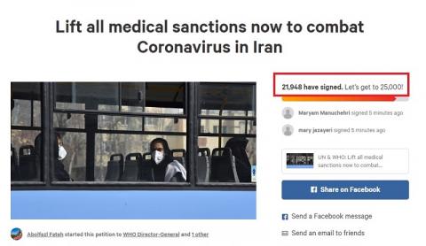 لینک کمپین: Lift all medical sanctions now to combat Coronavirus in Iran