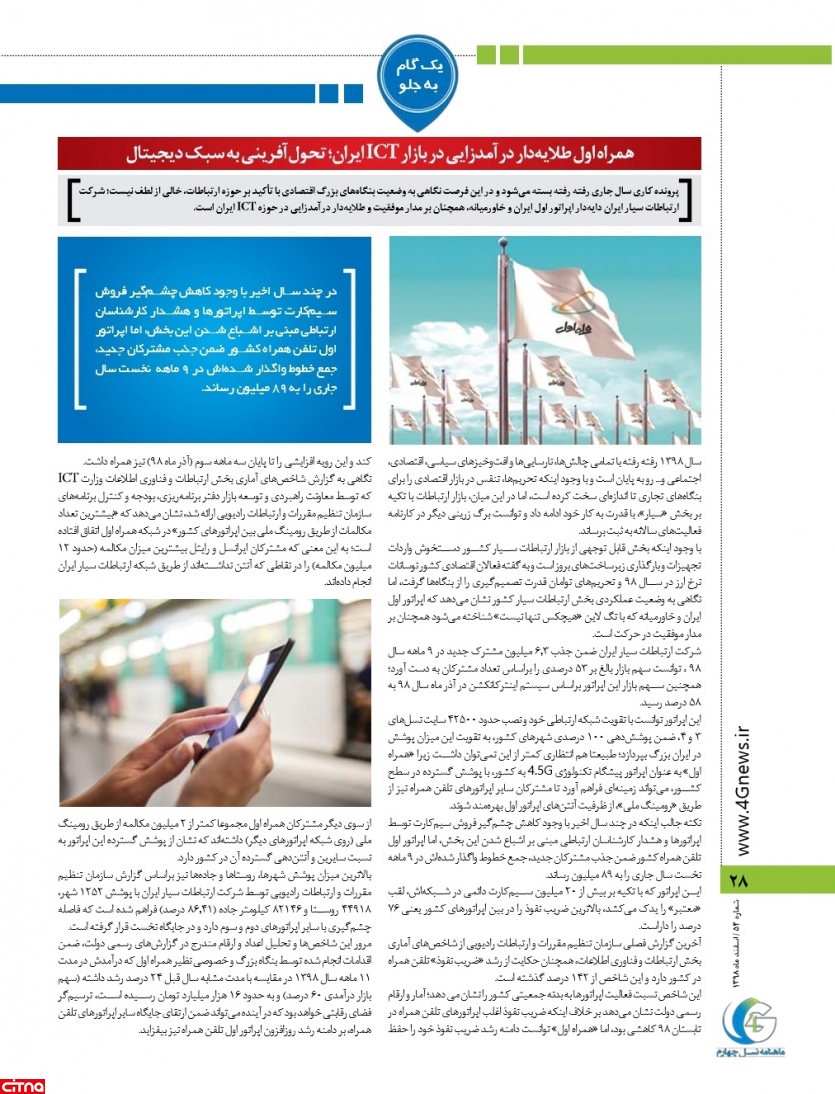پرونده کاری سال جاری رفته رفته بسته میشود و در این فرصت نگاهی به وضعیت بنگاههای بزرگ اقتصادی با تأکید بر حوزه ارتباطات، خالی از لطف نیست؛ شرکت ارتباطات سیار ایران دایهدار اپراتور اول ایران و خاورمیانه، همچنان بر مدار موفقیت و طلایهدار درآمدزایی در حوزه ICT ایران است.