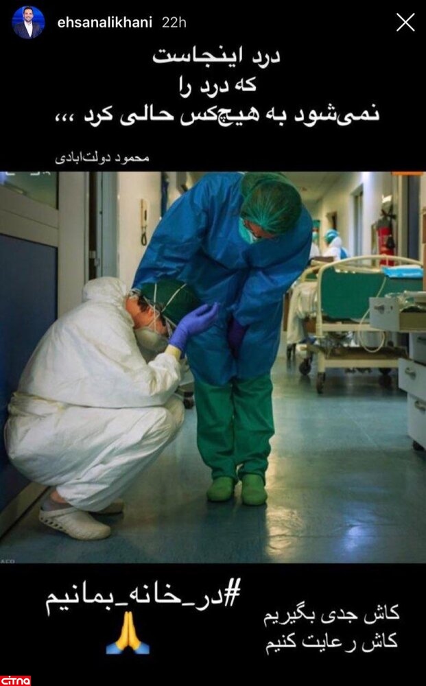 استوری احسان علیخانی و اصرار برای در خانه ماندن مردم