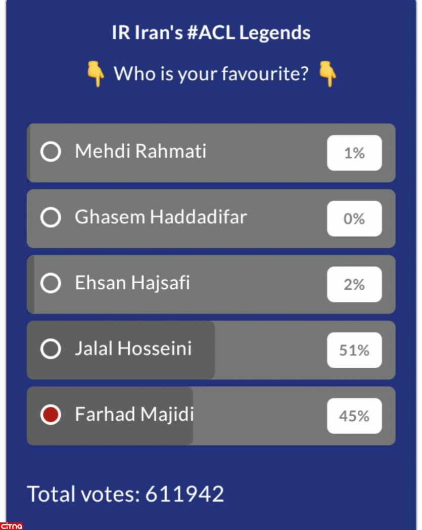 سایت کنفدراسیون فوتبال آسیا برای انتخاب اسطوره فوتبال ایران در لیگ قهرمانان آسیا یک نظرسنجی برگزار کرده است.