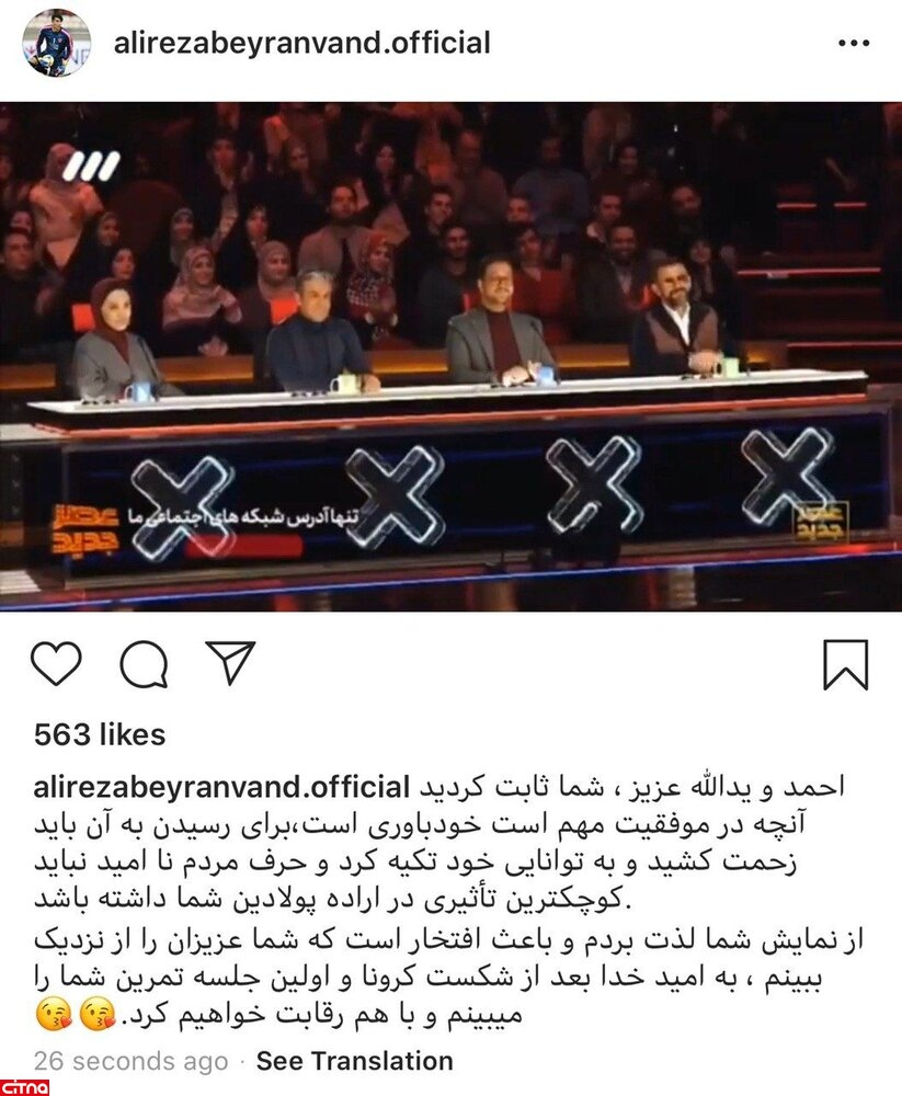 بیرانوند با انتشار پستی از قبول آرزوی دو شرکتکننده عصرجدید گفت