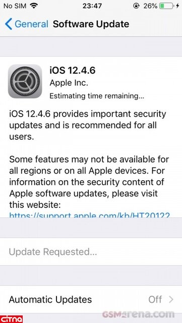 بر اساس خبری که در وبسایت gsmarena آمده است، هم اکنون برای گوشیهای آیفون ۵s و آیفون ۶ ، آیفون ۶ پلاس، نسل اول آیپد ایر، آیپد مینی ۲ ، آیپد مینی ۳ و نسل ششم آیپاد تاچ ، نسخه جدید ios ۱۲.۴.۶ منتشر خواهد شد.