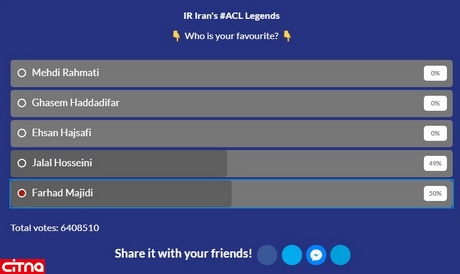 از تقلب و توهینهای هواداران دو تیم گرفته تا اعلام سیدجلال حسینی به عنوان برنده نهایی نظرسنجی. نکته عجیب و قابلتوجه این است که تا ظهر امروز جلال حسینی برنده این نظرسنجی بود. حسینی حتی پیامهای تبریک زیادی هم از سوی چهرههای سرشناسی از جمله برانکو ایوانکوویچ دریافت کرد. کنفدراسیون فوتبال آسیا اما به نظر چند ساعت پیش دوباره مدت زمان نظرسنجی را تمدید کرده و بعد از تمدید نظرسنجی فرهاد مجیدی با یک درصد اختلاف نسبت به حسینی اول شده!