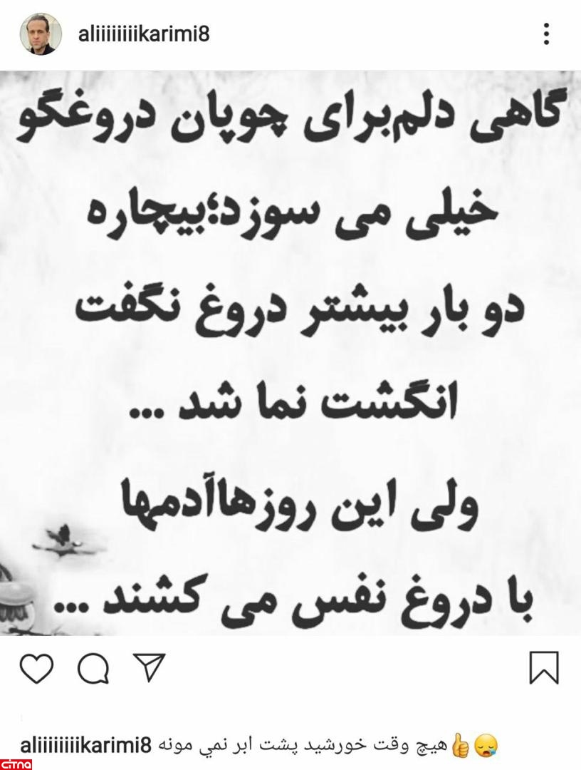 علی کریمی پستی کنایهآمیز در اینستاگرامش منتشر کرد.