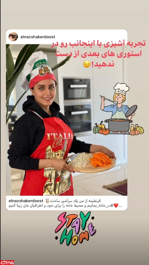 به گزارش سرویس وبگردی سیتنا، الناز شاکردوست بازیگر فیلم «شبی که ماه کامل شد» در اینستاگرام تصویری از خودش منتشر کرد که مشغول آشپزی است. او با تشویق مردم به در خانه ماندن نوشت: