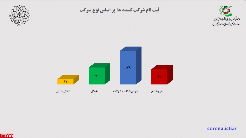 رییس مرکز ارتباطات و اطلاع رسانی معاونت علمی درباره ثبت نام شرکت کنندگان بر اساس نوع شرکت نیز گفت: شرکتهای دانش بنیان، استارتاپها شرکتهای خلاق همگی در لیست متقاضیان قرار دارند تا با استفاده از ظرفیتهای آنان شاهد رونق فعالیتهای این حوزه در خدمت رسانی بیشتر و بهتر به مردم و جامعه باشیم.