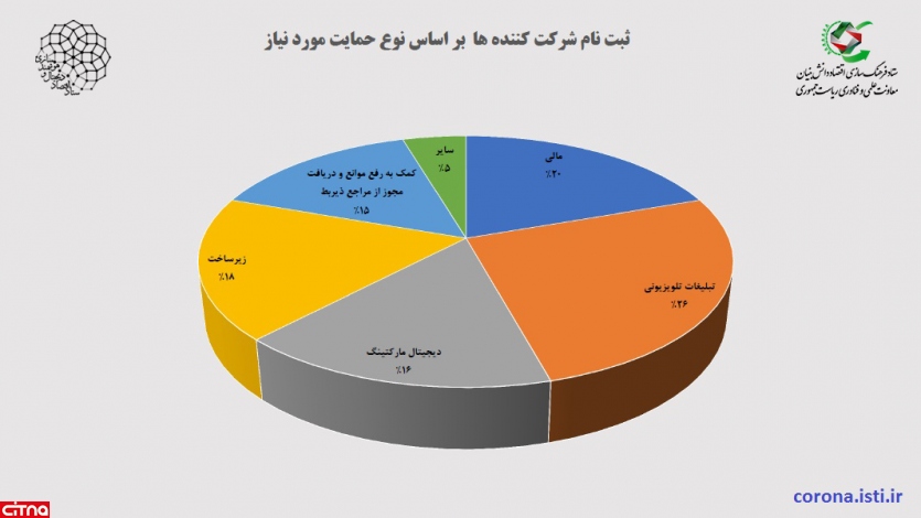 رییس مرکز ارتباطات و اطلاع رسانی معاونت علمی با بیان اینکه بیشتر درخواستهای حمایتی برای اطلاع رسانی و تبلیغات تلویزیونی است، گفت: پس از تبلیغات تلویزیونی، بیشترین درخواست حمایتی مربوط به حمایتهای مالی است. حمایتهای زیرساختی، دیجیتال مارکتینگ، کمک به رفع موانع و دریافت مجوز از مراجع مرتبط در رتبههای بعدی هستند.