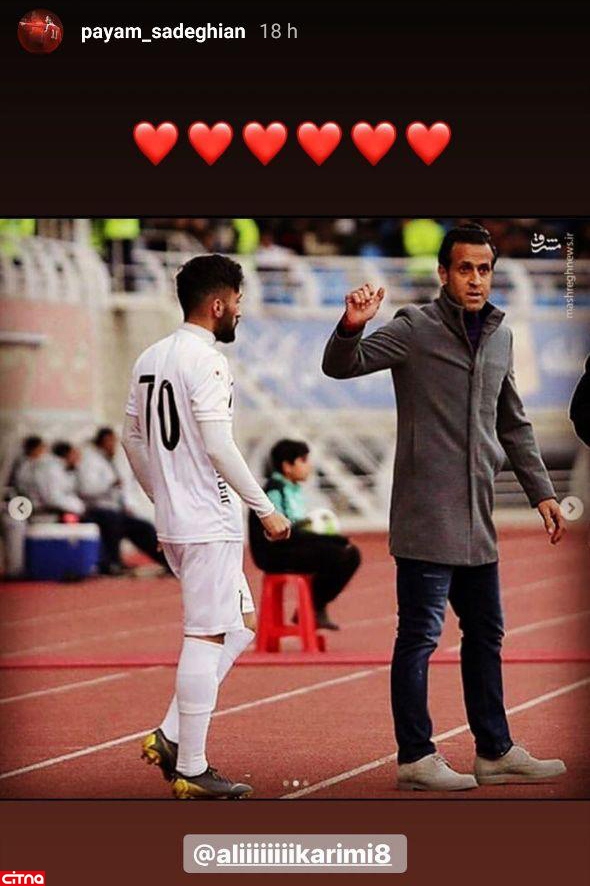 در همین راستا پیام صادقیان که رابطه خوبی با تتلو دارد با انتشار عکسی از علی کریمی در صفحه رسمی خود در اینستاگرام از اسطوره تیم ملی و باشگاه پرسپولیس حمایت کرد.