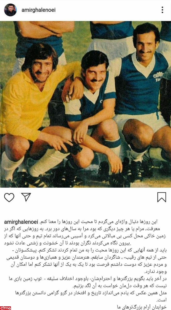 امیر قلعه نویی در صفحه شخصی خودش با انتشار متنی ضمن گرامیداشت بزرگان تاریخ باشگاه استقلال از افرادی که او را مورد حمایت قرار دادند تشکر کرد. او در این پست نوشت: