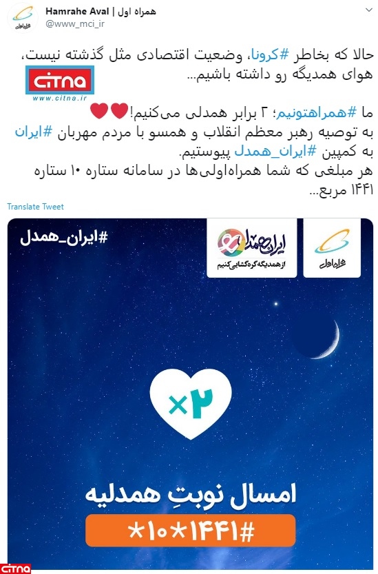 به گزارش سیتنا، همراه اول در توئیتی، نوشت: