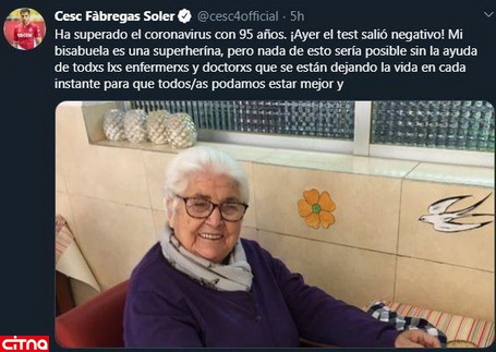 او توانست در سن ۹۵ سالگی ویروس کرونا را شکست دهد. دیروز تستش منفی اعلام شد. مادرِ مادربزگ من یک ابرقهرمان است. اما هیچ کدام از اینها بدون کمک پرستارها و دکترها امکان پذیر نبود، همان کسانی که از زندگی خود مایه میگذارند تا ما در این برهه زمانی سخت، بهتر زندگی کنیم.
