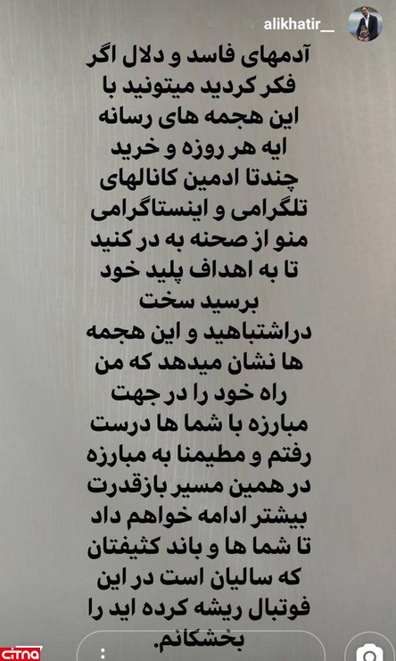 به گزارش سرویس وبگردی سیتنا، علی خطیر معاون پیشین باشگاه استقلال استوری های افشاگرانه ای را در خصوص برخی حواشی مطرح شده منتشر کرد که در ادامه می خوانید.
