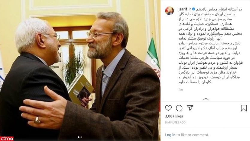 پست اینستاگرامی ظریف در پایان مجلس دهم و تقدیر از لاریجانی