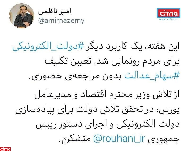 به گزارش سیتنا، دکتر امیر ناظمی، رئیس سازمان فناوری اطلاعات ایران در توئیتی نوشت: