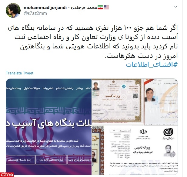 اگر شما هم جزو ۱۰۰ هزار نفری هستید که در سامانه بنگاه های آسیب دیده از کرونا ی وزارت تعاون کار و رفاه اجتماعی ثبت نام کردید باید بدونید که اطلاعات هویتی شما و بنگاهتون امروز در دست هکرهاست.