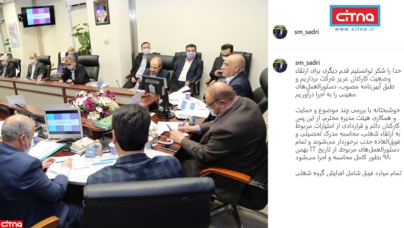 خدا را شکر توانستیم قدم دیگری برای ارتقاء وضعیت کارکنان عزیز شرکت برداریم و طبق آییننامه مصوب، دستورالعملهای معینی را به اجرا درآوریم.